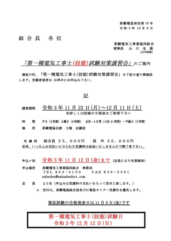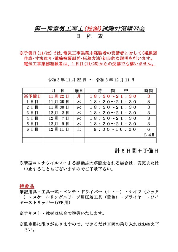 【第一種電気工事士(技能)試験対策講習会】開催のお知らせ 2021.10.12 セミナー情報 PDF「第一種電気工事士(技能)試験対策講習会」のご案内PDF申込書 < 【内線規程を活用した実践的な配線設計技術】開催のお知らせ【有接点シーケンス制御(基礎編)セミナー】 >