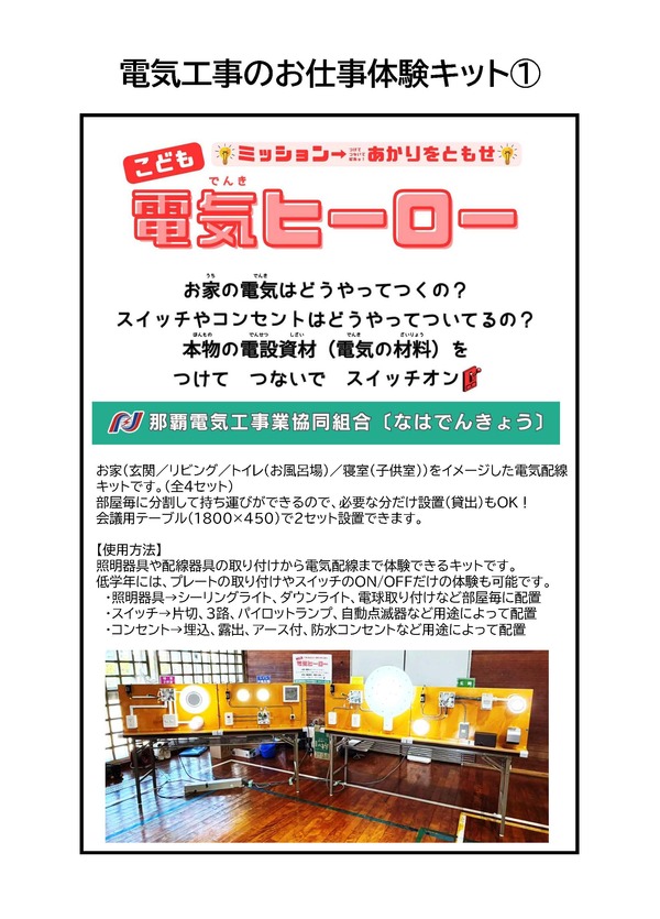 お仕事体験キットに関するお問い合わせは、那覇電協事務局(棚原)までご連絡をお願いいたします。